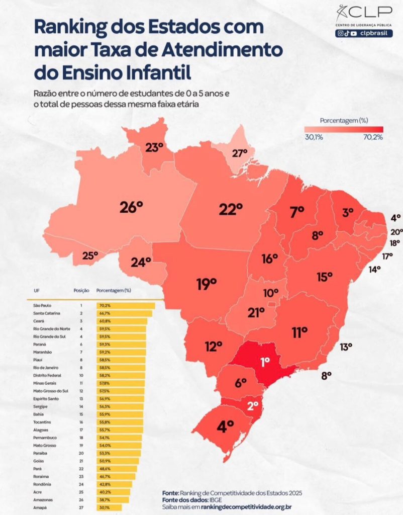 Levantamento divulgado pelo Centro de Liderança Pública revela que o Amazonas está na penúltima colocação entre os Estados brasileiros em acesso à educação pública por crianças de até 5 anos.