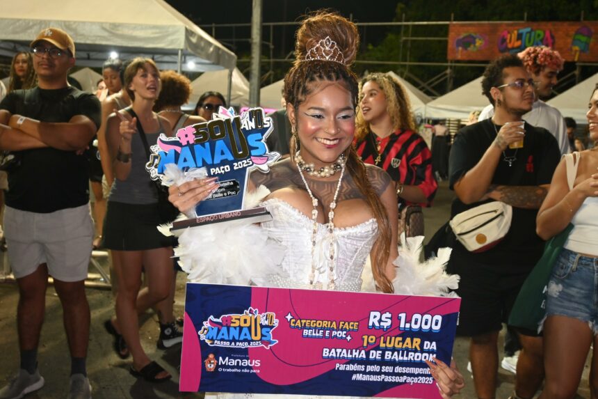 A grande emoção da noite foi a coroação da vencedora da categoria “Face”. Em sua fala, ela resumiu o sentimento de conquista e representatividade. “É uma honra ver a cultura ballroom ocupando um espaço tão grande como o ‘#SouManaus Passo a Paço 2025’. Como mulher afroindígena do povo Pankararu, ganhar este prêmio é mostrar que nossa identidade e nossa arte também brilham aqui”.