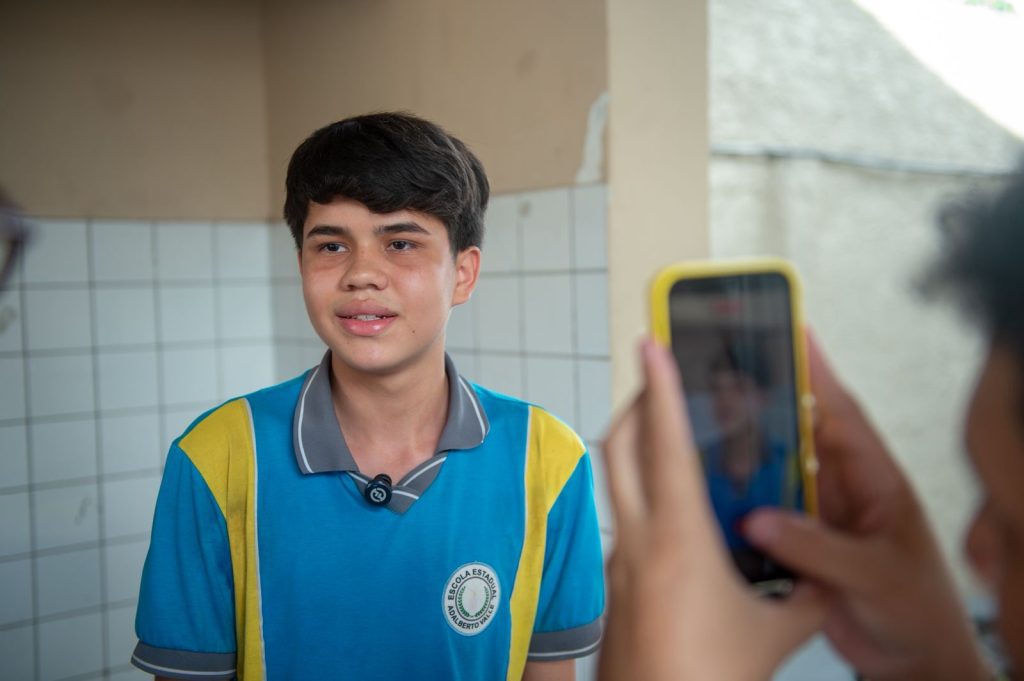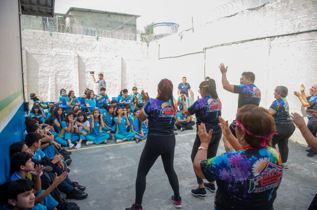 No olhar dos estudantes, surpresa e admiração ao verem a apresentação de hip-hop do grupo de idosos “100% Jovem”, que esteve presente, nesta quinta-feira (25/09), na Escola Estadual Adalberto Valle, zona sul de Manaus, levando uma abordagem educativa sobre idadismo aos estudantes do 8º ano. A ação faz parte da programação da Semana Estadual da Pessoa Idosa, organizada pela Secretaria de Estado de Justiça, Direitos Humanos e Cidadania (Sejusc).