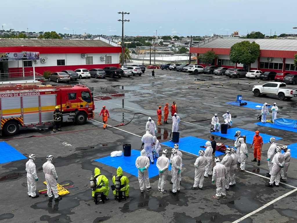 Mais de 50 alunos do Curso de Formação de Oficiais (CFO) do Corpo de Bombeiros Militar do Amazonas (CBMAM) participaram, nesta quinta-feira (02/10), de um treinamento de emergência envolvendo produtos químicos em Manaus. O objetivo é preparar os profissionais para atuação em uma situação real.