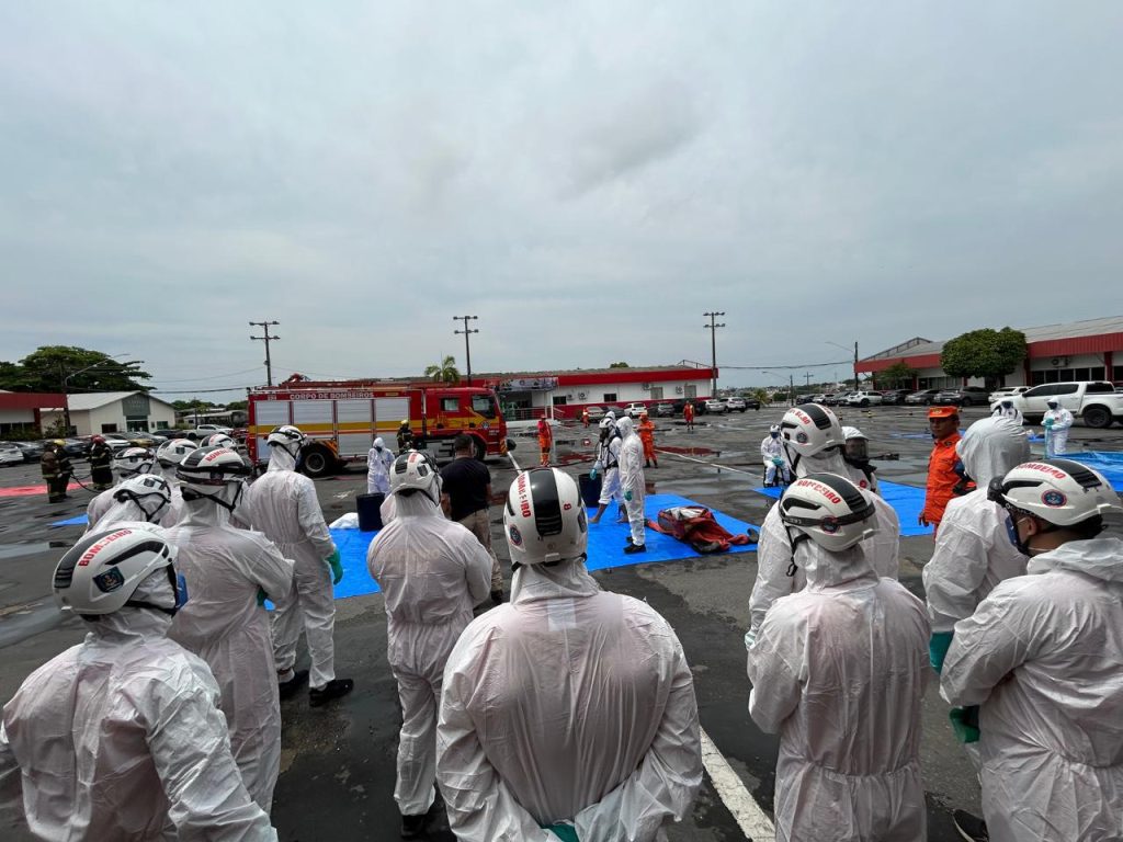 A simulação aplicou técnicas de salvamento, isolamento, evacuação, contenção e descontaminação nos cenários.