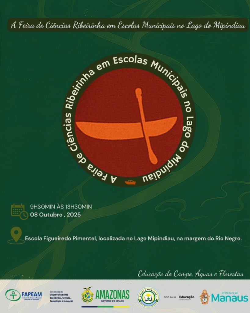 A ação, amparada via Programa de Apoio à Popularização da Ciência, Tecnologia e Inovação no Amazonas (POP CT&I), edital nº 003/2025, ocorrerá no dia 8 de outubro, das 9h30 às 13h30, na Escola Figueiredo Pimentel, localizada no Lago Mipindiaú, na margem do Rio Negro, na zona rural de Manaus.