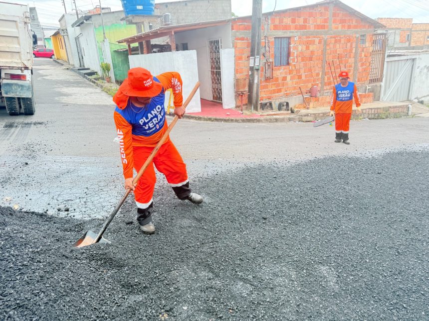 A Prefeitura de Manaus, por meio da Secretaria Municipal de Infraestrutura (Seminf), atua, na zona Norte, dentro do cronograma do “Plano de Verão”. Desta vez, as equipes atuam no bairro Monte das Oliveiras, onde os serviços de recuperação asfáltica acontecem na rua Monte Itapeva, uma via necessária da comunidade.