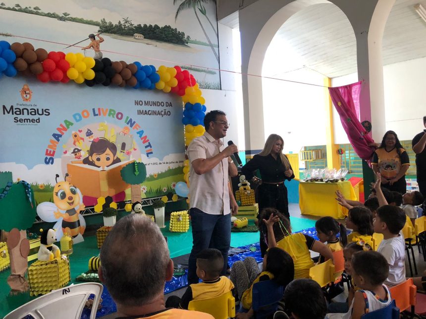 Com o tema “Zuzu e a Tela Brilhante e o Cupuaçu Mágico”, a Prefeitura de Manaus, por meio da Secretaria Municipal de Educação (Semed), promoveu, nesta sexta-feira, 17/10, o encerramento da “Semana do Livro Infantil” no Centro Municipal de Educação Infantil (Cmei) Abelhinha, localizado no bairro Coroado 2, zona Leste da capital. A unidade, que atende 440 crianças nos turnos matutino e vespertino, marcou o fim de uma semana repleta de atividades voltadas à valorização da leitura e do universo literário.
