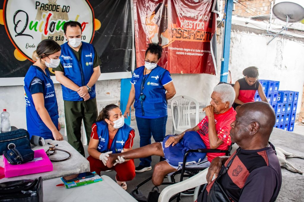 Situado no coração da Praça 14 de Janeiro, em Manaus (AM), o Barranco de São Benedito é o primeiro quilombo urbano da Amazônia. Certificado em 2014, é um centro de resistência cultural que preserva tradições afro-brasileiras por meio de atividades como samba, culinária, artesanato e celebrações religiosas. É lá que mora Manoel Vieira Paixão, 79 anos. Portador de diabetes mellitus tipo 2 e com mobilidade reduzida, ele é paciente do programa Melhor em Casa.