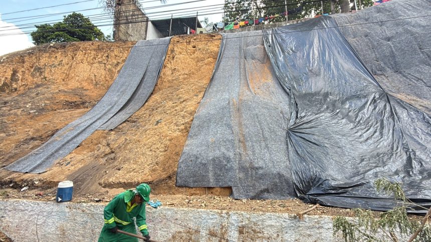Na parte superior do local, havia uma grande quantidade de lixo descartado de forma irregular. A equipe realizou a limpeza completa de todos os resíduos e entulhos, com o apoio da Semulsp, que fez o corte das árvores em um dos lados da avenida. Além disso, foi iniciado o processo de preparação e grampeamento da geomanta.
