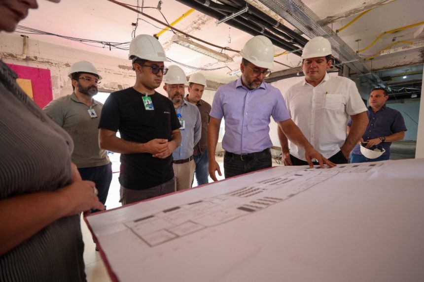 O governador Wilson Lima vistoriou, nesta segunda-feira (17/11), as obras da nova Policlínica e do Hospital Dia que estão sendo construídos no Complexo Hospitalar Sul (CHS), em Manaus. A nova estrutura, que já tem 70% de obras em execução, vai ampliar o atendimento aos pacientes do HPS 28 de Agosto, com foco na pós-alta e em procedimentos de curta permanência.