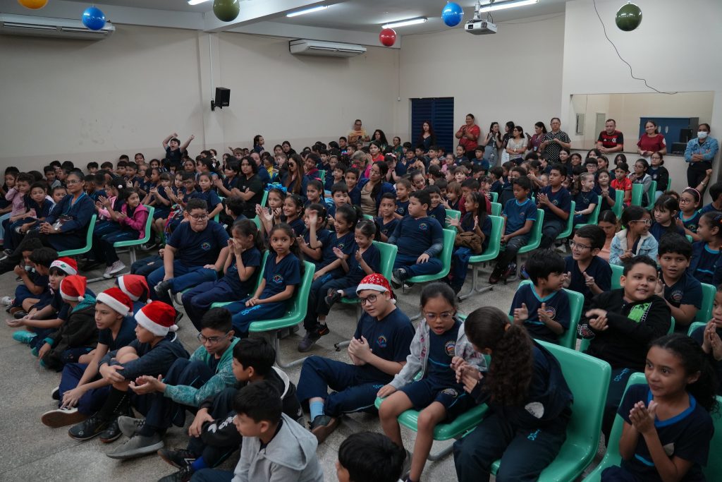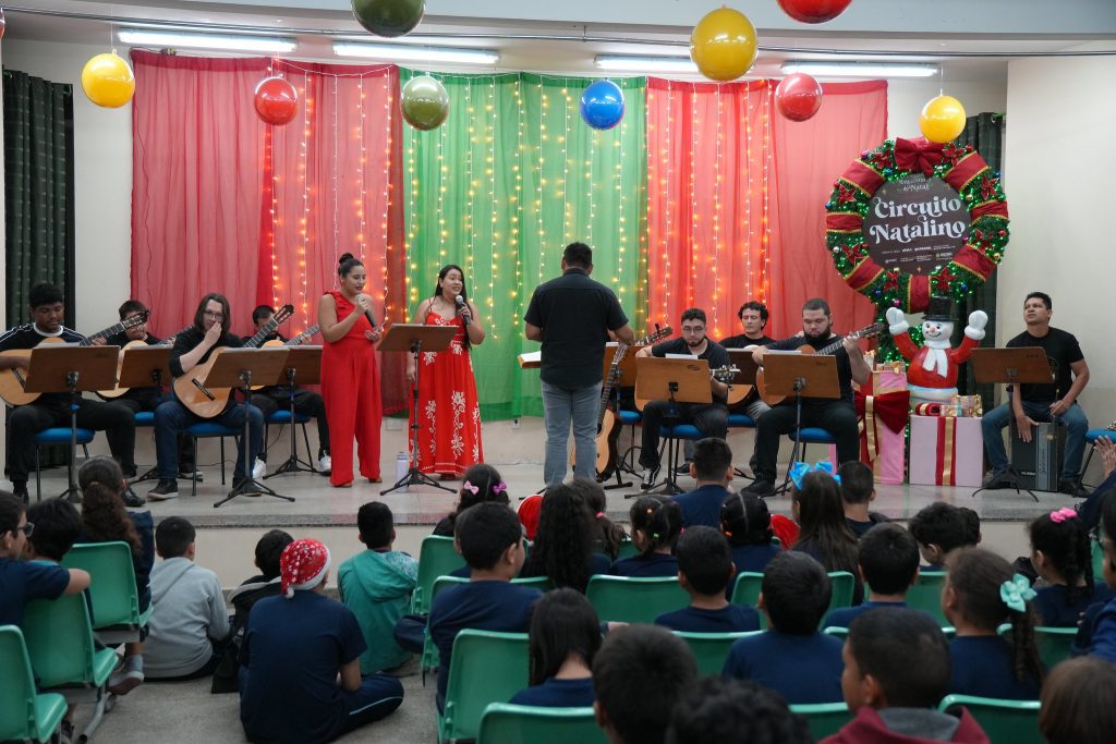 O espírito natalino tomou conta da Escola Estadual de Tempo Integral Gonçalves Dias, na manhã desta quarta-feira (03/12), durante mais uma edição do Circuito Natalino, promovido pelo Governo do Amazonas, por meio da Secretaria de Estado de Cultura e Economia Criativa. A ação levou música ao vivo, repertório especial e momentos de conexão artística para os estudantes.