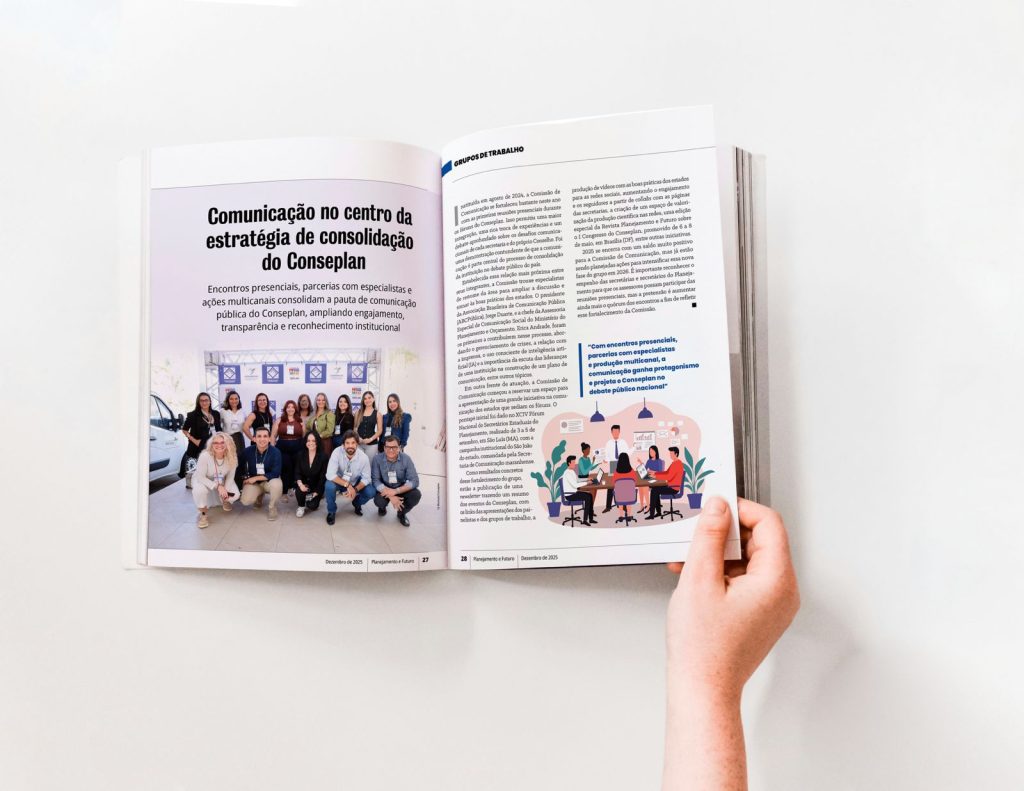 A edição inclui ainda uma reportagem produzida pelo Conseplan sobre o papel da comunicação no planejamento governamental. O conteúdo destaca a atuação da Sedecti nos encontros nacionais e mostra que uma comunicação qualificada é elemento estratégico para ampliar a transparência, fortalecer o diálogo com a sociedade e consolidar políticas públicas mais eficazes.