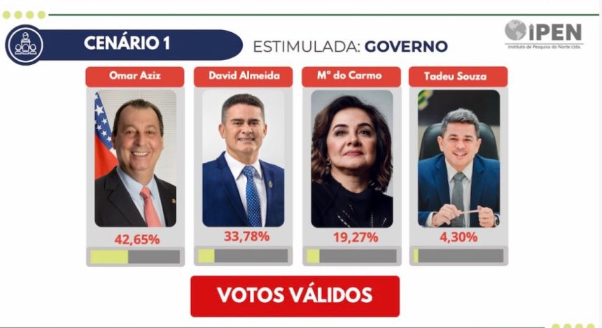 Nos cenários simulados, o senador vence três nomes dos mais cotados: a empresária e pré-candidata Maria do Carmo, o vice-governador Tadeu de Souza e o prefeito de Manaus, David Almeida, ainda que este tenha declarado que não tem plano de disputar as eleições de 2026.