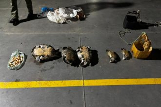 Os animais foram encontrados vivos e escondidos dentro de sacos…